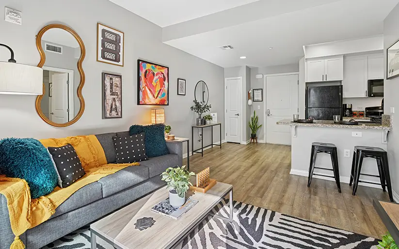 Our USC student apartments boast high-end interior features and designer finishes, such as private bedrooms with en-suite bathrooms, hardwood-style flooring, modern furnishings, granite countertops, stainless steel appliances, flat-screen TVs, and in-unit washers and dryers. West 27th Place offers an elevated student living experience just minutes from USC.