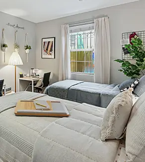 Experience next-level student living with thoughtfully designed interiors and modern features. Each of our USC student apartments boasts stylish furnishings and luxury conveniences designed to support your academic and social lifestyle, such as private bedrooms and bathrooms, hardwood-style flooring, granite countertops, walk-in closets, a fully equipped kitchen, a flatscreen TV, an in-unit washer and dryer, and so much more!